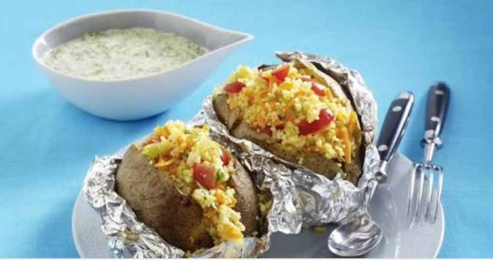 A baked potato, or jacket potato, is a potato that has been baked for eating. When well cooked, a baked potato has a fluffy interior and a crisp skin. It may be served with fillings and condiments such as butter, cheese or sour cream. Potatoes can be baked in a conventional gas or electric oven, a convention oven, a microwave oven, on a barbecue grill, or on/in an open fire. Some restaurants use special ovens designed specifically to cook large numbers of potatoes, then keep them warm and ready for service.