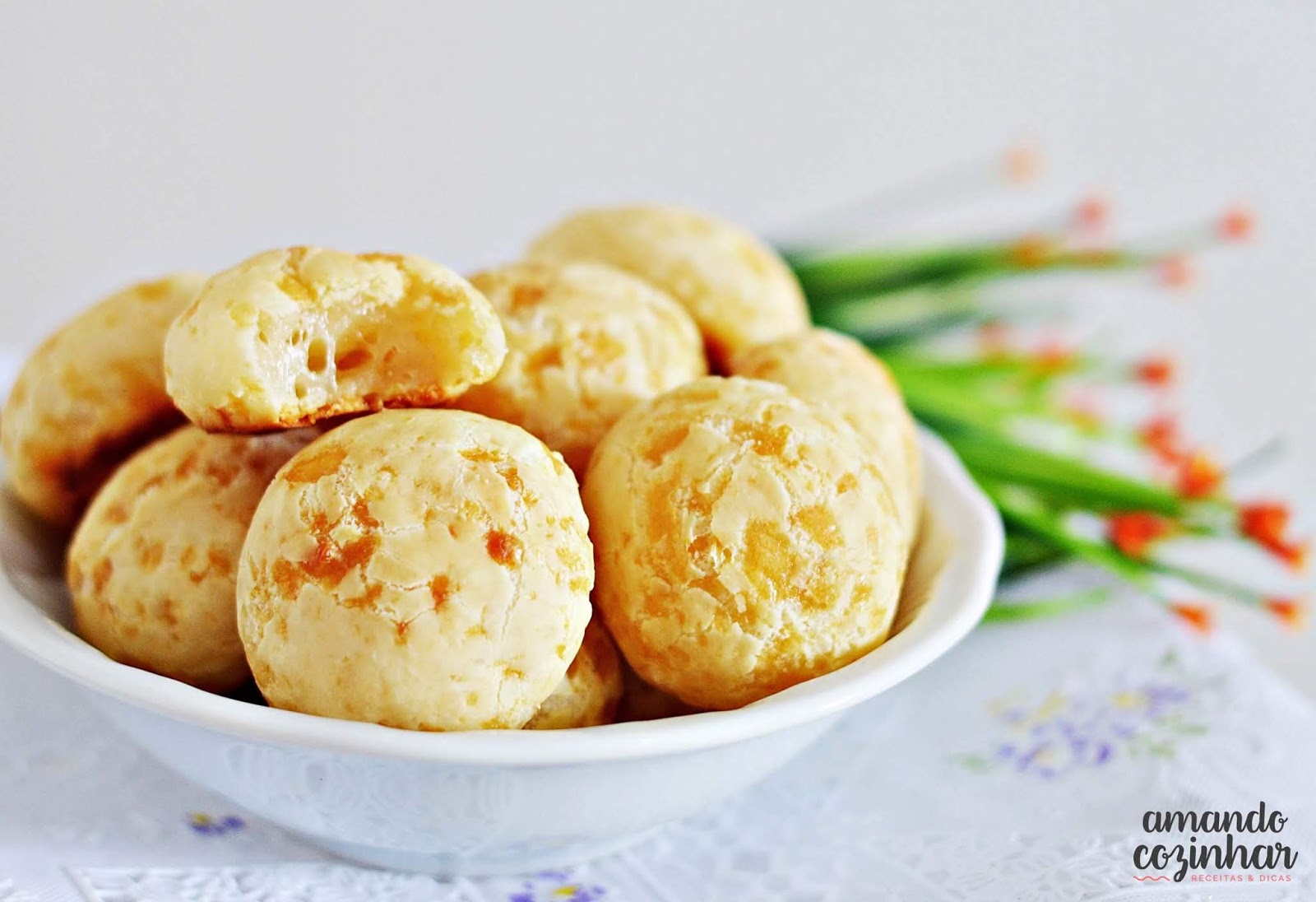 Pão de queijo or Brazilian cheese bread is a small, baked cheese roll, a popular snack and breakfast food in Brazil. It is a traditional Brazilian recipe, from the state of Minas Gerais.