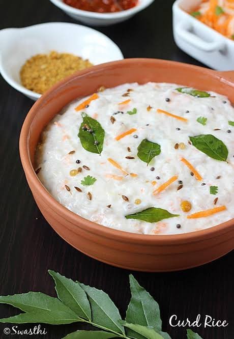 Thayir Sadham is usually paired with a spoonful of spicy pickles or dried chillies.
