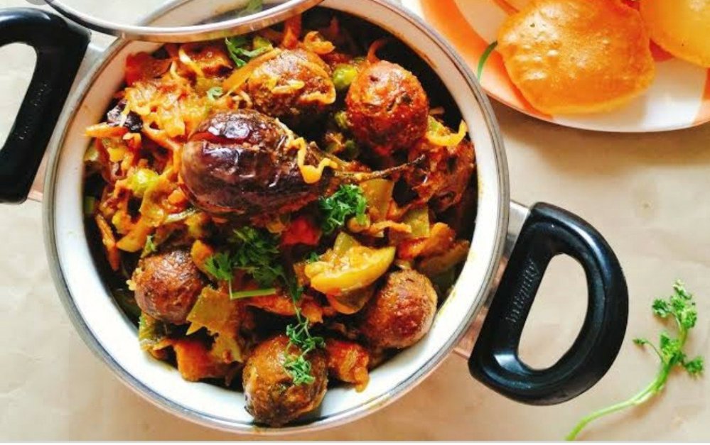 Undhiyu is a Gujarati mixed vegetable dish that is a regional specialty of Surat, India. The name of this dish comes from the Gujarati word “undhu”, which translates to upside down, since the dish is traditionally cooked upside down underground in earthen pots, termed “matlu”, which are fired from above.