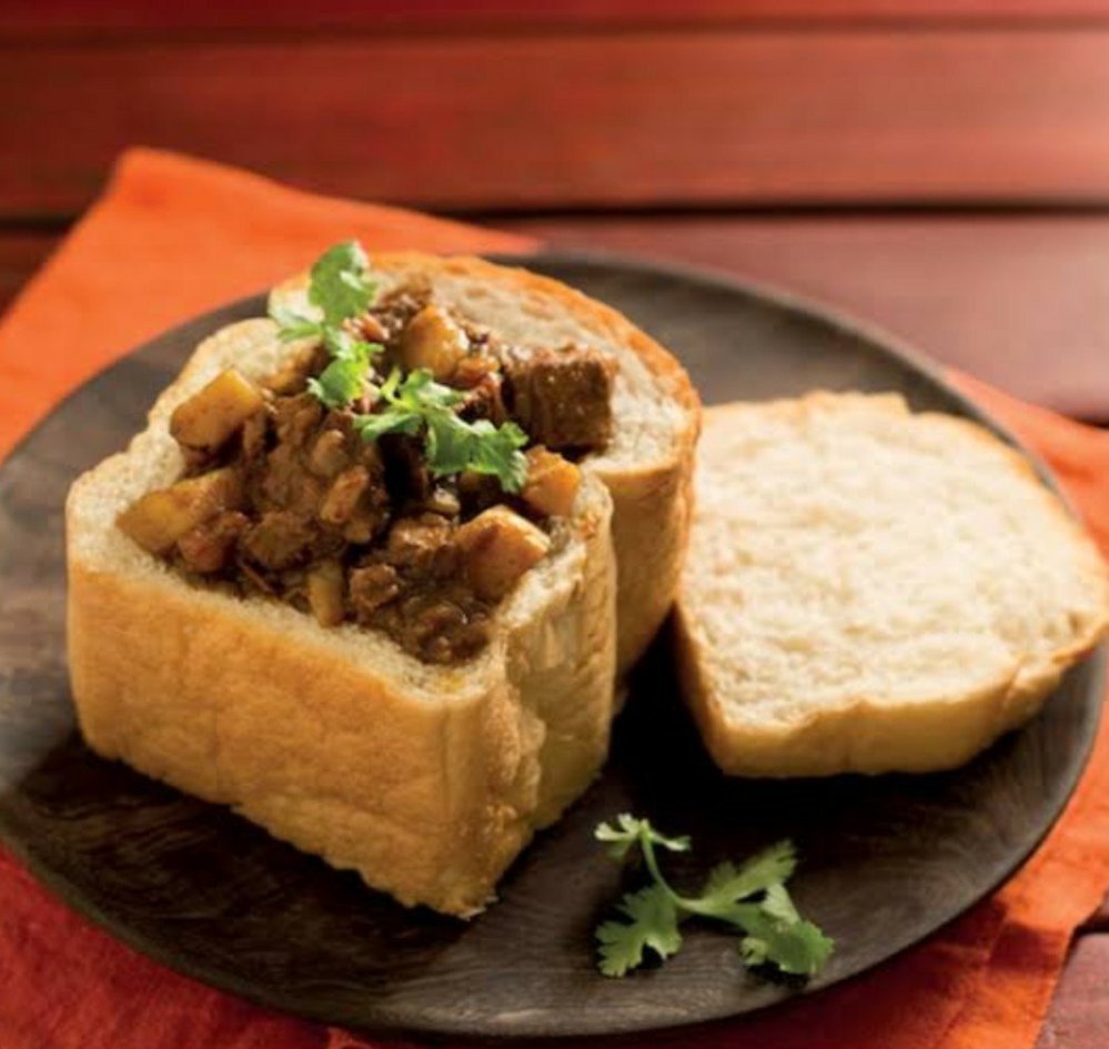 Bunny chow, often referred to simply as a bunny, is a South African fast food dish consisting of a hollowed-out loaf of white bread filled with curry. It ultimately originated among Indian south Africans of Durban .A small version of the bunny chow that uses only a quarter loaf of bread is sometimes called, by black south Africans, a scambane or kofta it is a name that it shares with spatlo, a South African dish that evolved from the bunny